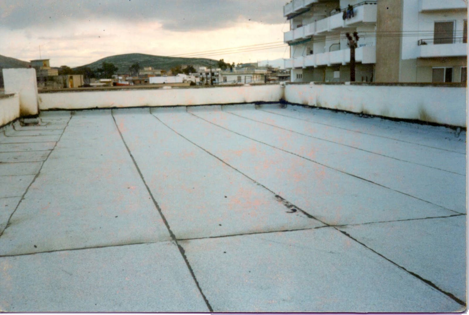 | Λάθος: Τοποθέτηση μη ελαστικής μεμβράνης σε μεγάλου εμβαδού δώμα και η μη σωστή επικόλλησή του στο υπό- στρωμα. Η μεμβράνη κυριολεκτικά τραβήχτηκε και αποκολ- λήθηκε από το δάπεδο. |