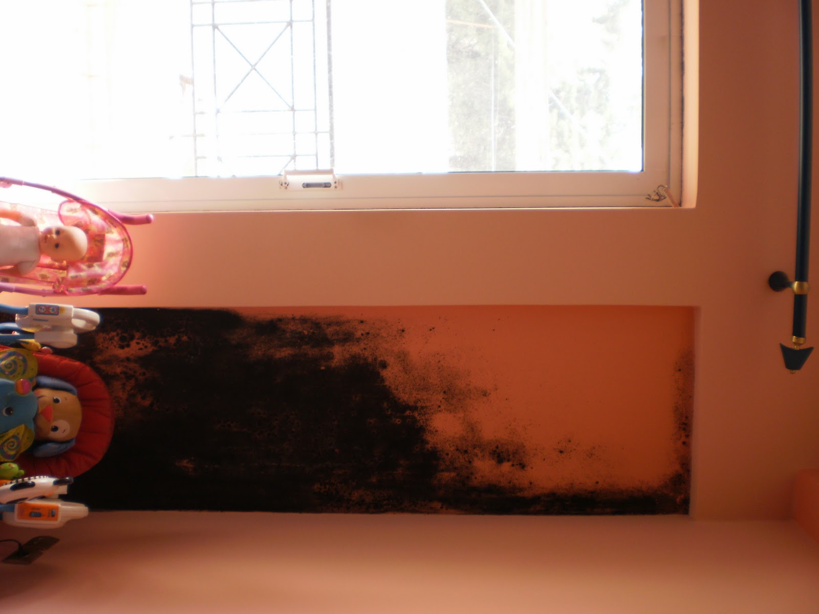 Εκτεταμένη ανάπτυξη μυκήτων σε μη θερμομονωμένο τοίχο από μπετόν. Κίνδυνος για την υγεία των ιδιοκτητών |