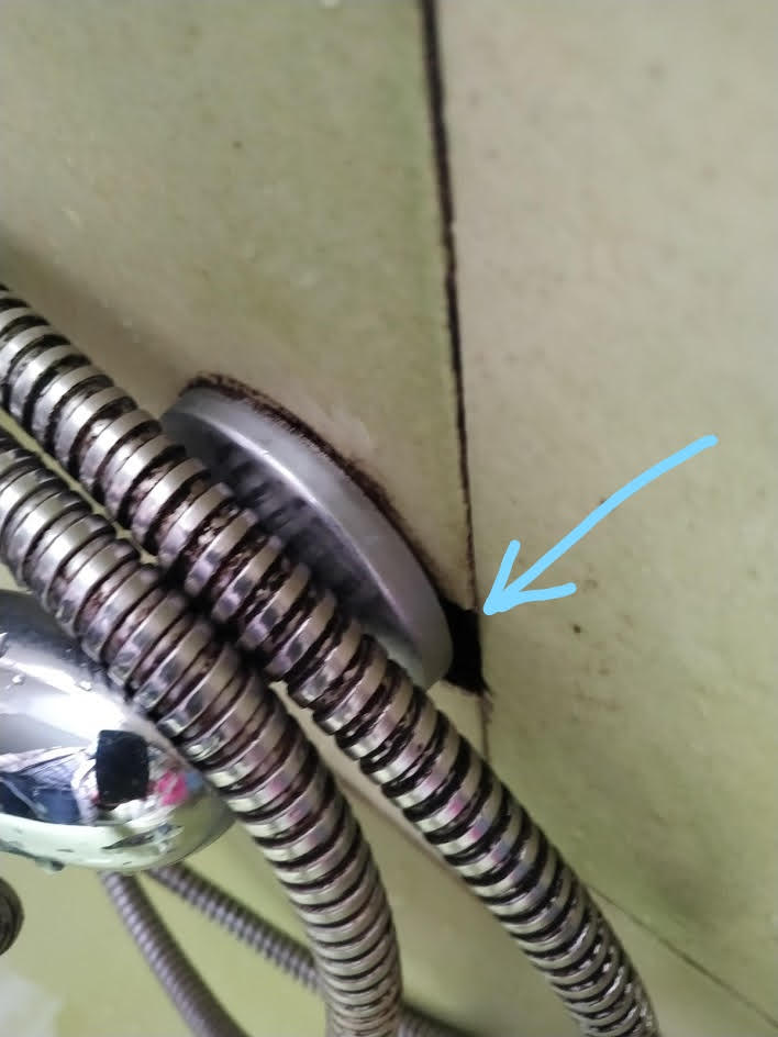 1. όλοι οι αρμοί της μπανιέρας στην επαφή τους με τα πλακάκια είτε στον τοίχο, είτε στο οριζόντιο τμήμα δεν είχαν σφραγισθεί. Ήταν κατά συνέπεια ανοιχτοί και το νερό μπορούσε να περάσει από αυτούς. Ακόμη και ο αρμός όπου η εσωτερική προς το διαμέρισμα όψη της μπανιέρας έχει επενδυθεί με πλακάκια και στην άνω απόληξή τους εφάπτονται με το χείλος της μπανιέρας (βλ. τα βέλη στη σχετική φωτογραφία).