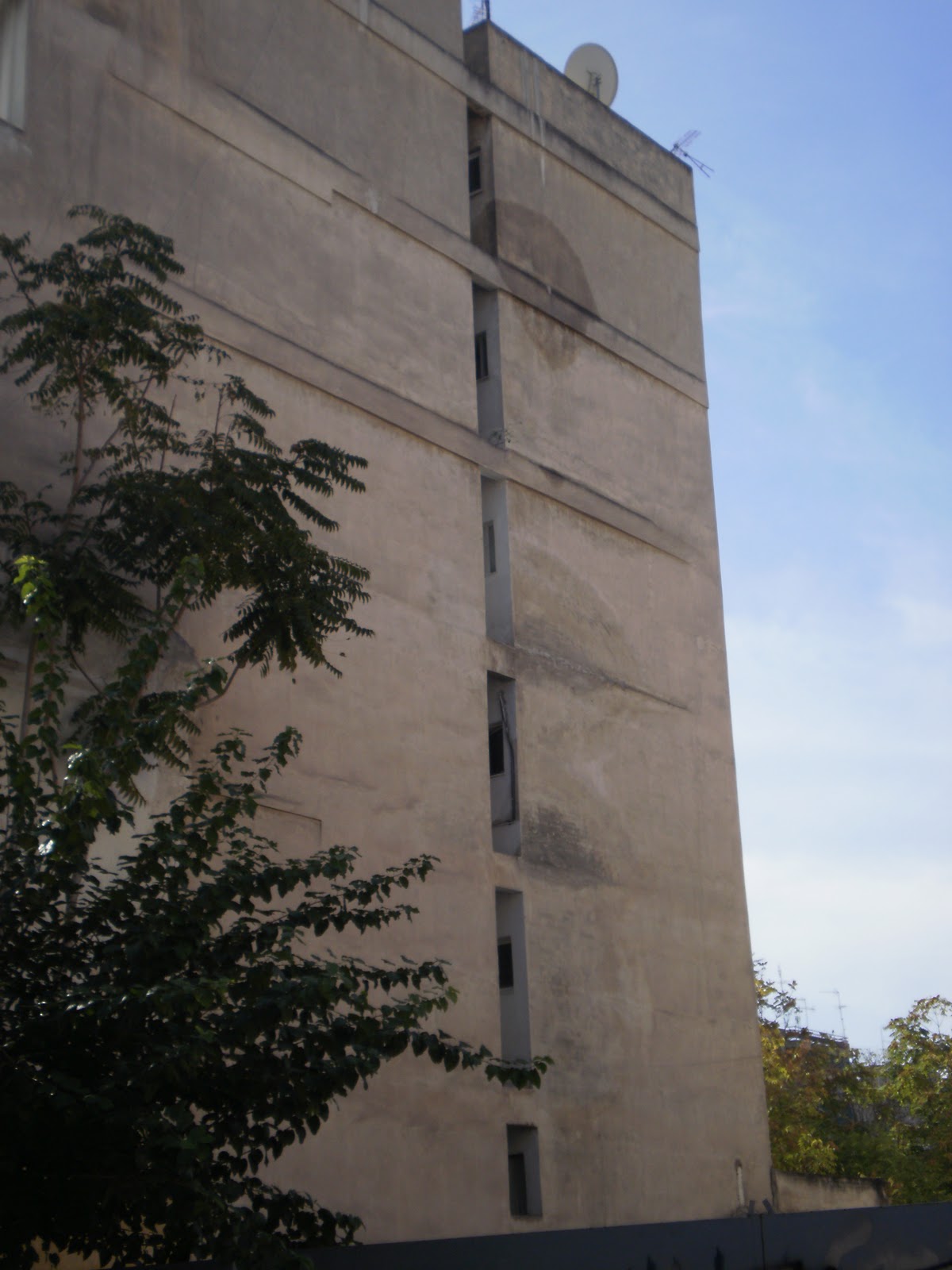 | Παρατηρείστε τις υγρασίες στον τοίχο αυτής της πολυκατοικίας. Όλες οι υγρασίες προέρχο- νται από τα μπάνια των διαμερισμάτων. |